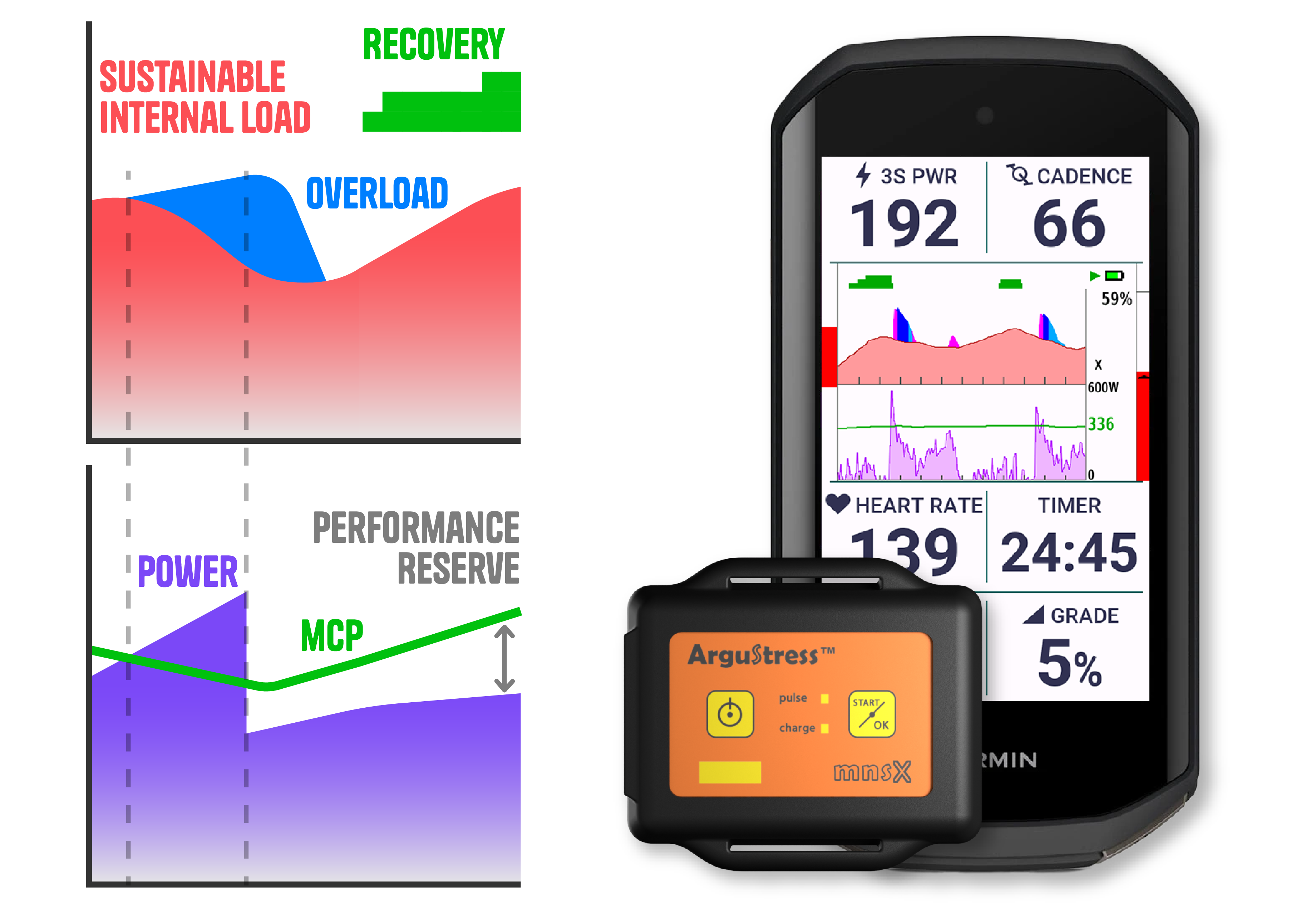It continuously measures the changes in internal load, the overload and recovery, momentary Critical Power and other essential key parameters during training or racing.